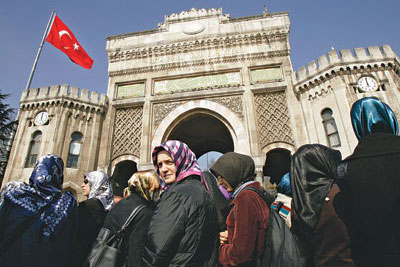 Bir Danıştay kararında[5], “üniversitelerimizde bazı kız öğrencilerin Cumhuriyet’in temel ilkesi (olan) laikliğe karşı din kurallarına dayalı devlet düzenini savunduklarını belirtmek amacı ile başörtülerini ideolojilerine bayrak yaptıkları” belirtilmektedir. Bir başka Danıştay kararında[6] ise, “saldırgan olmayan görünüşüne ve geleneksel değerine rağmen, başörtüsü takma eylemi(nin), laiklik ve Cumhuriyet karşıtı akımların bir simgesi ve kadınların özgürlüklerine karşı bir meydan okuma aracı haline” gelmiş olduğuna işaret edilmektedir.