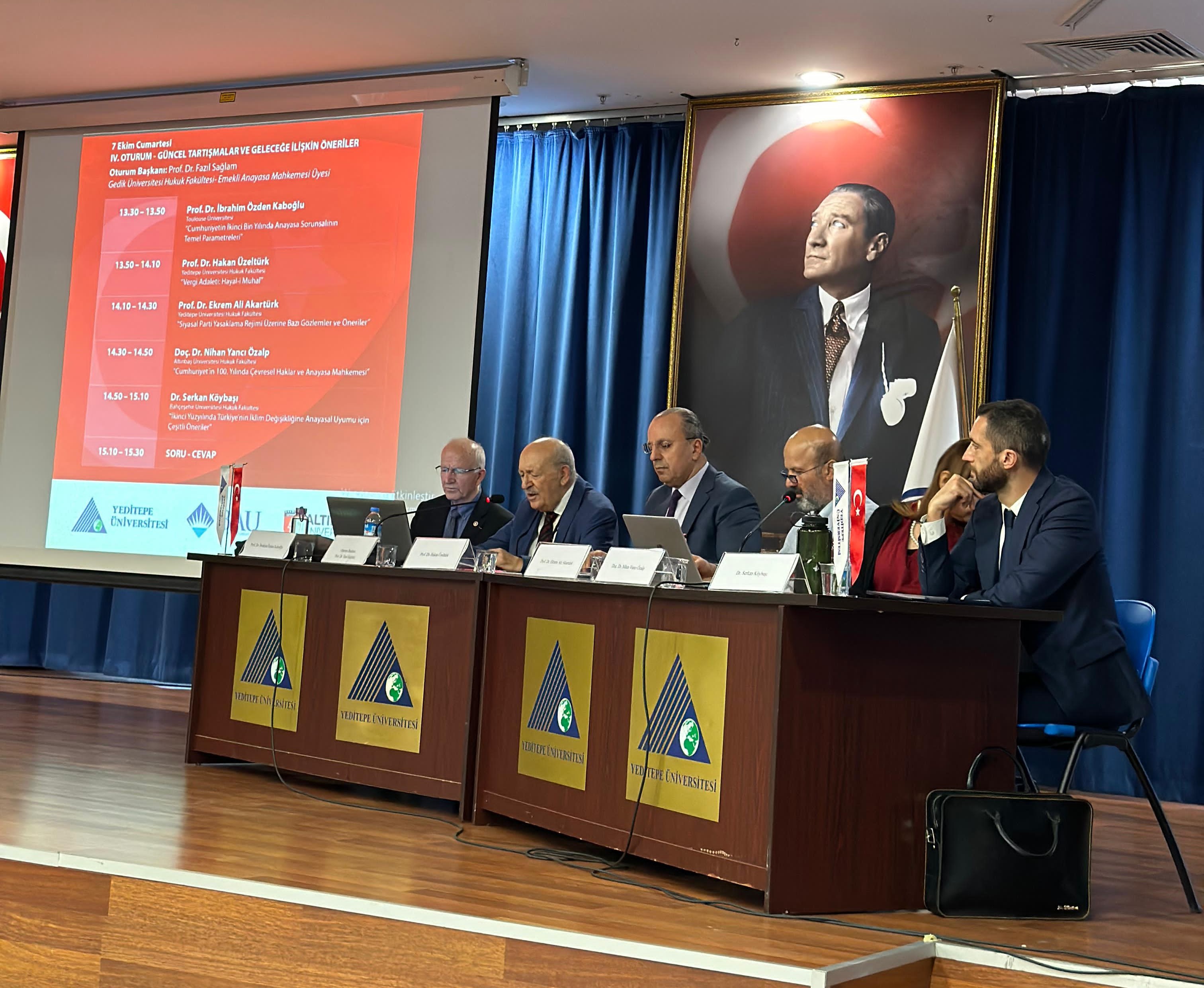 Türkiye Cumhuriyeti’nin kuruluşunun 100. yılı şerefine düzenlenen çok sayıda etkinlikten biri de Yeditepe Üniversitesi’nin ev sahipliği yaptığı “Cumhuriyet’in 100. Yılında Anayasa Hukuku Tartışmaları” adlı sempozyum oldu. 7 Ekim tarihinde Üniversite’nin Kayışdağı Kampüsü’nde gerçekleşen etkinlik pek çok hukukçuyu anayasa konusu çevresinde bir araya getirdi ve görüş alış-verişinde bulunmasını sağladı.