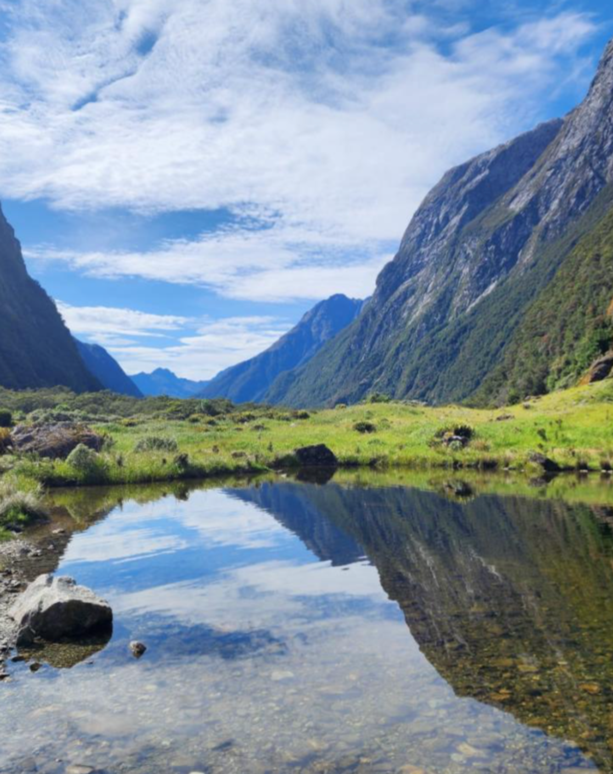Milford Yolu yürüyüşü asıl ikinci gün başlıyor. Çoğunluk sabah 6.00 gibi kalkıp yine hışırtılar içinde hazırlanıyor ve yola koyuluyor. Ancak herkesin ritmi farklı olduğu için yola tek başınıza (veya birlikte geldiğiniz insanlarla) çıkıyorsunuz ve yolda da diğerlerine pek rastlamıyorsunuz. O yüzden yürüyüş sırasında doğayla baş başa kalmanız mümkün oluyor.